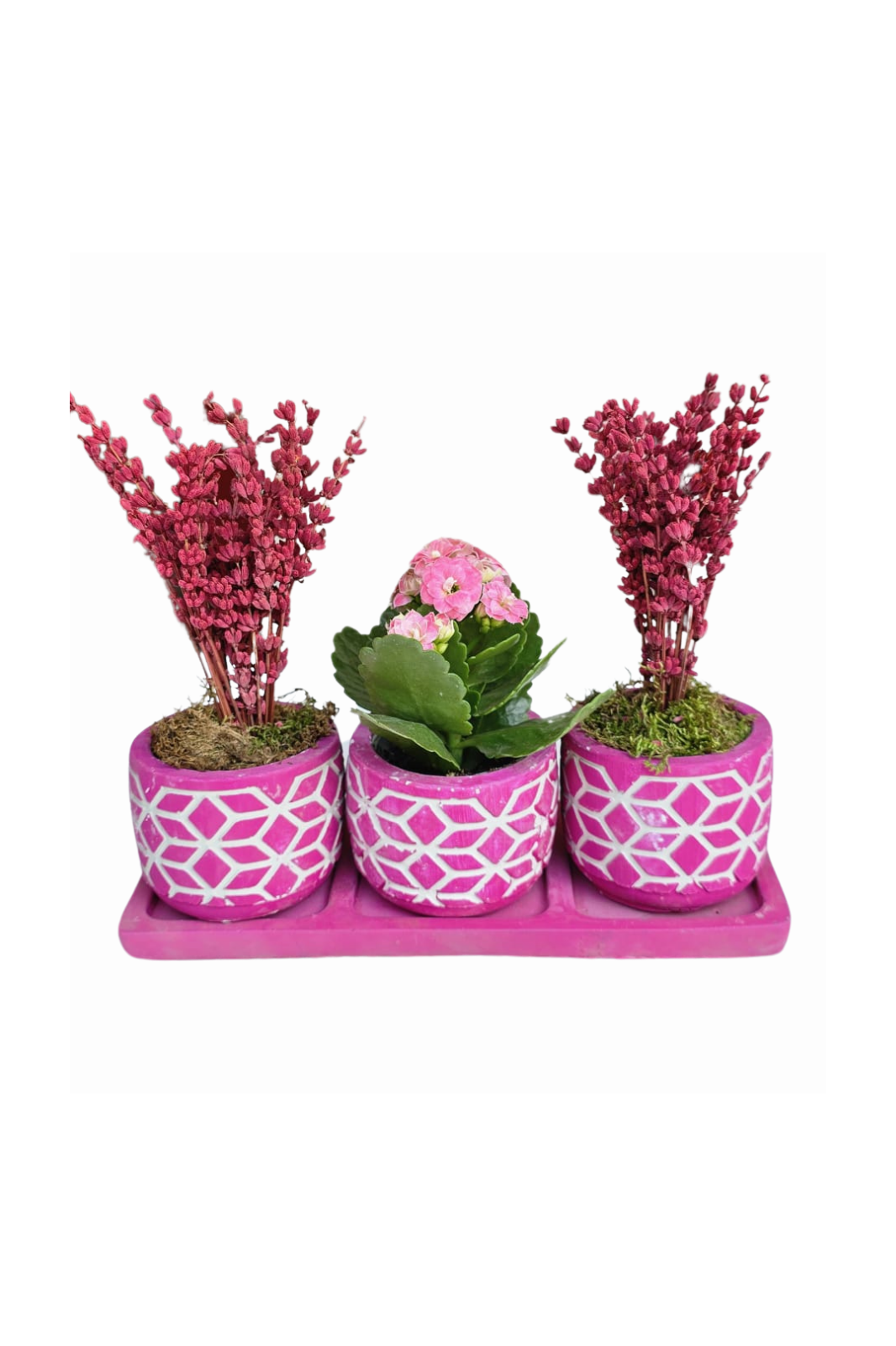 Mor saksısı ile bu aranjman yaşam alanlarınıza zenginlik katar.