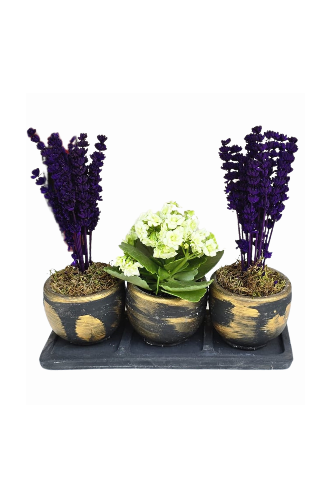 3'lü Beton Saksıda Lavanta Ve Kalanchoe