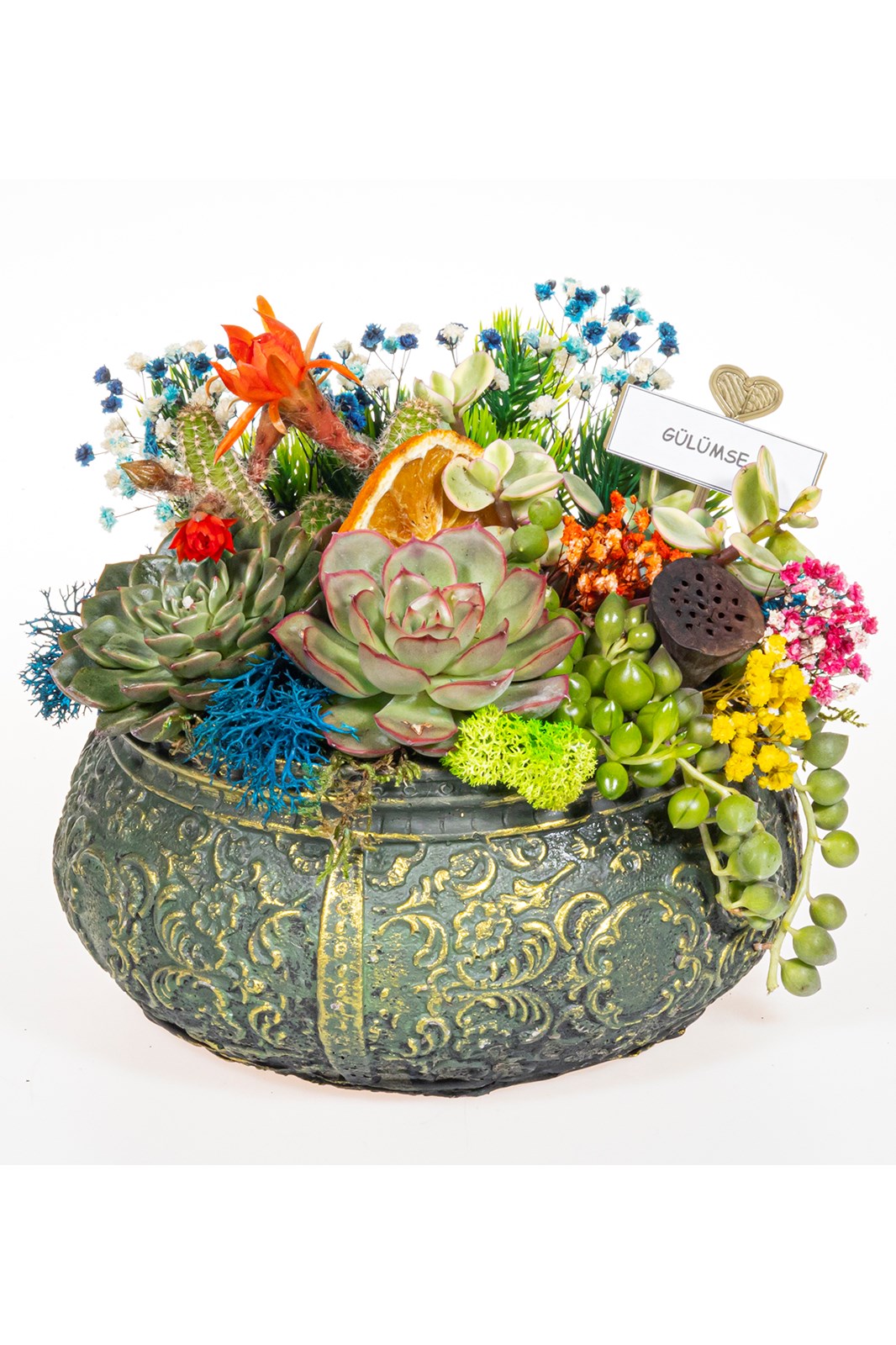 Dekoratif saksıda sukulent aranjmanları, estetik bir görünüm ve canlılık sağlar. Bu aranjmanlar, özel tasarım saksılar içinde sunulur ve evinizin her köşesinde göz alıcı bir şekilde sergilenebilir. Çeşitli sukulent türlerinin bir araya getirildiği bu aranjmanlar, renk, dokular ve yaratıcı düzenlemelerle evinize şıklık katmanızı sağlar.