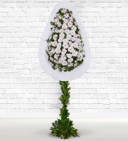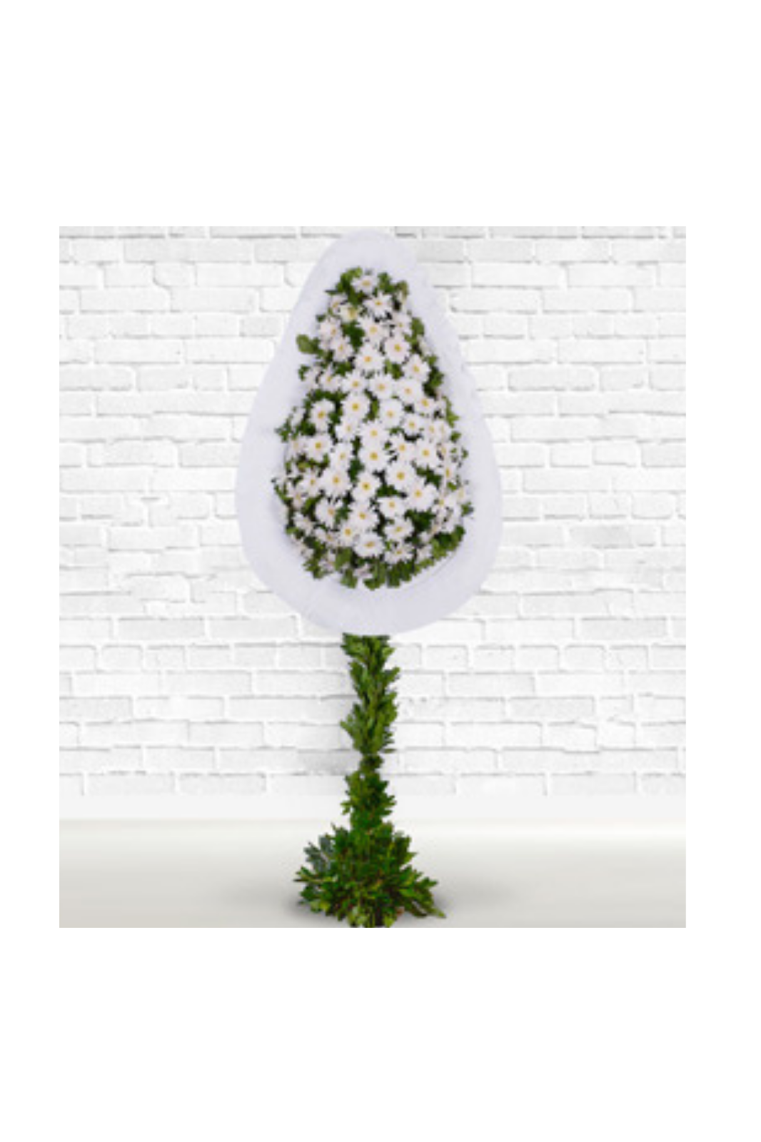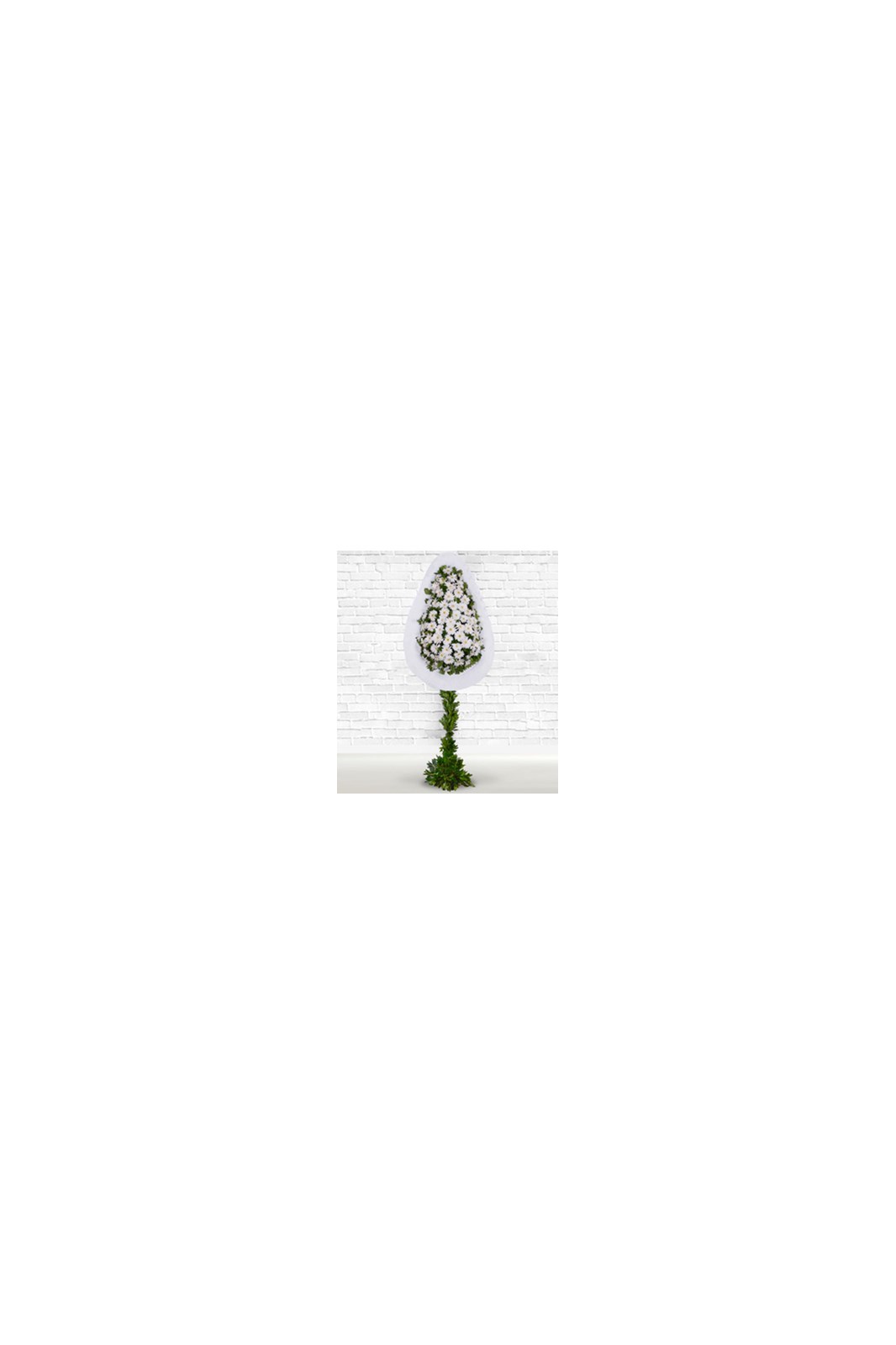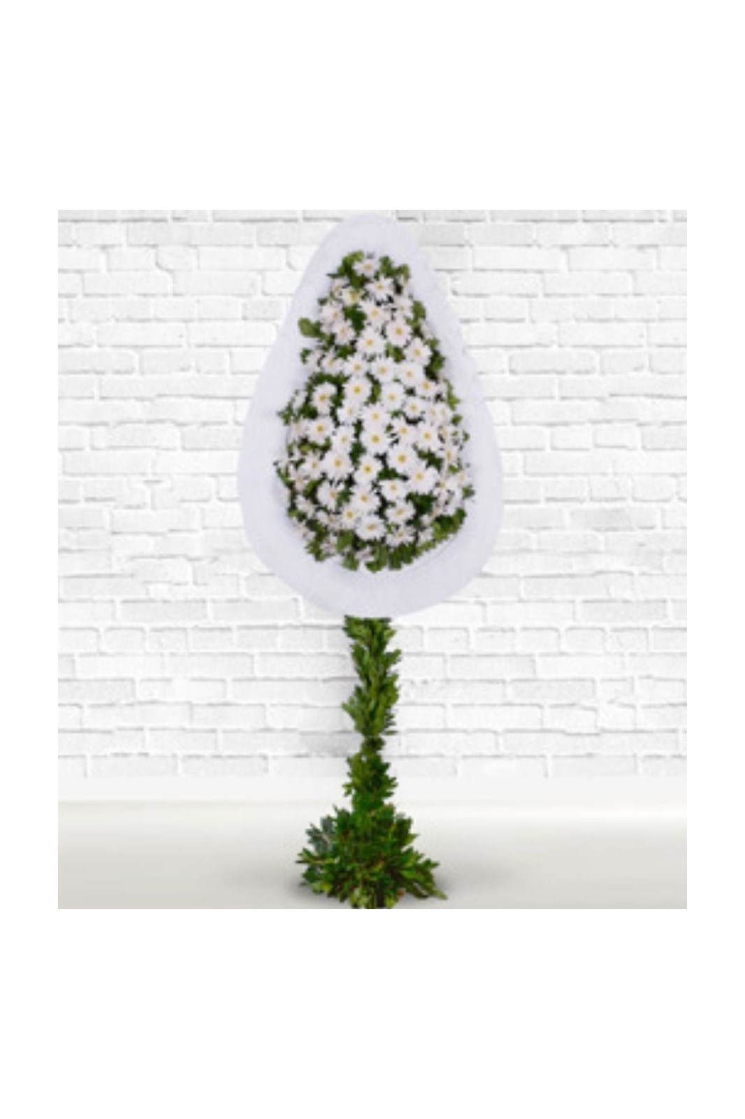 Ürün İsmi: Beyaz Gerberalarla Hazırlanmış Tek Katlı Ayaklı Çelenk