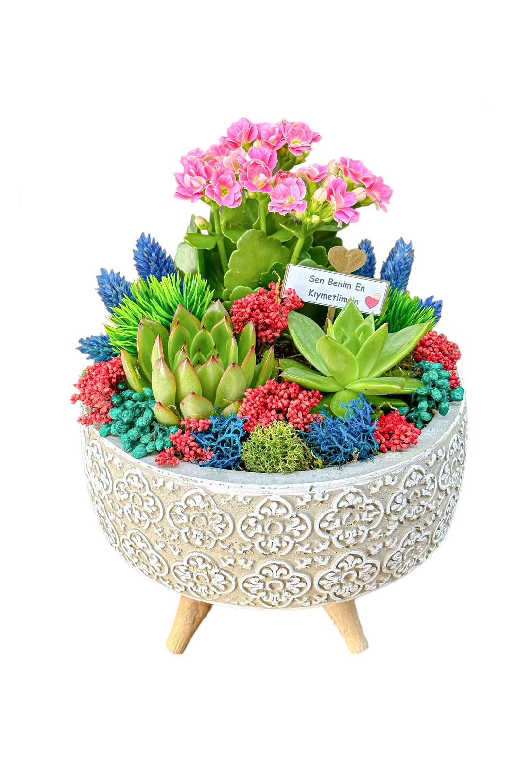 Sağlıklı Sukulent ve Kalanchoe Bitkileri: Her bir aranjmanda, uzun ömürlü ve sağlıklı sukulent ile kalanchoe bitkilerini bulacaksınız. Bu bitkiler evinizde doğanın tazeliğini getirecek.