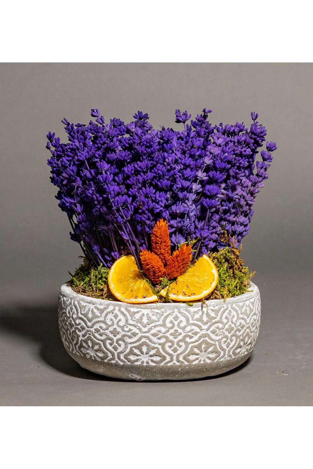 Desenli Beton Saksıda Mor Lavanta