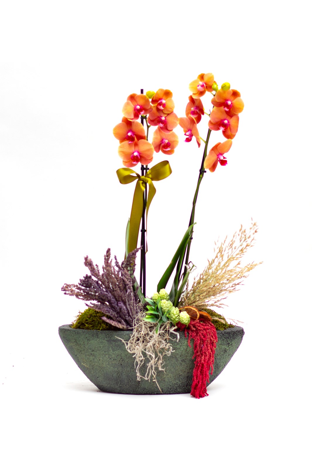 Evinizi sıcaklık ve tutkuyla doldurmak istiyorsanız, çift dallı ateş orkidemiz tam da aradığınız ürün! Doğanın ateşini ve zarafetini iç mekanınıza taşıyan bu orkide, estetik tasarımı ve canlı renkleriyle büyüleyici bir atmosfer yaratmak için ideal bir tercih.