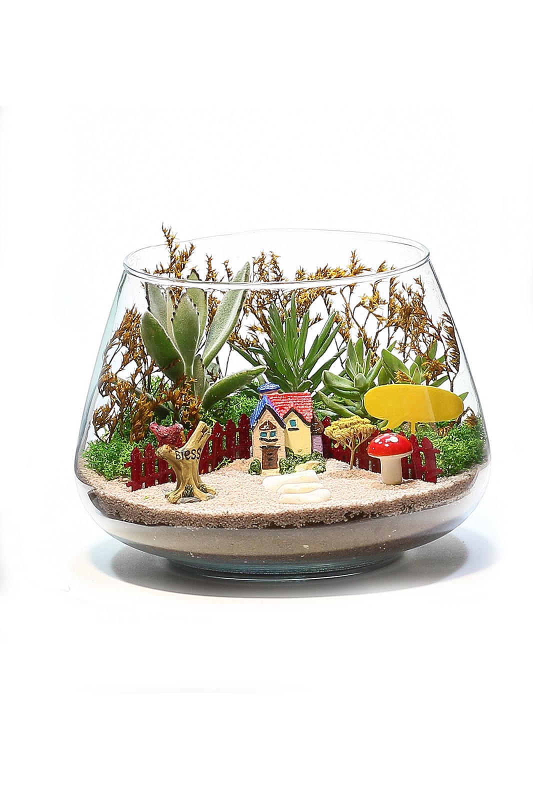 Sıradan, birbirini tekrarlayan hediyelerden ve süprizlerden sıkıldığınızı hissettik; Sizi farklı hissettirecek özel bir ürün tasarladık.Cam fanus içerisinde sukulentler, kum, yosun, maket malzemeleri ve kuru bitkiler kullanılarak tasarlanmıştır. Ürün bakım bilgileri siparişinizle birlikte gönderilecektir.Ürün boyutu 25x20cm'dir.özenle hazırlanmıştır. Gerekli bakım kuralları yerine getirildiğinde uzun yıllar size ve sevdiklerinize eşlik edecektir. Unutmayın sukulent türü etli yapraklı bitkiler aydınlık ortamları çok severler. Bitkilerinizin formlarını korumasını istiyorsanız mutlaka aydınlık ışık alan bir ortamda muhafaza etmeye özen gösterin.